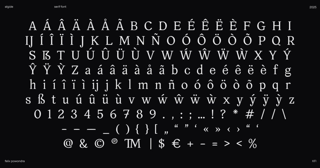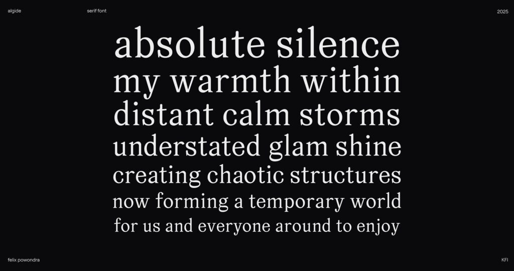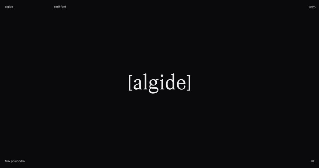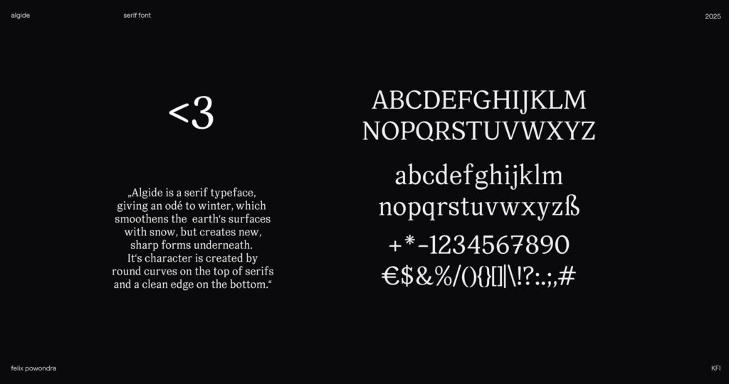„Algide is a serif typeface, giving an odé to winter, which smoothens the  earth‘s surfaces with snow, but creates new, sharp forms underneath. It‘s character is created by round