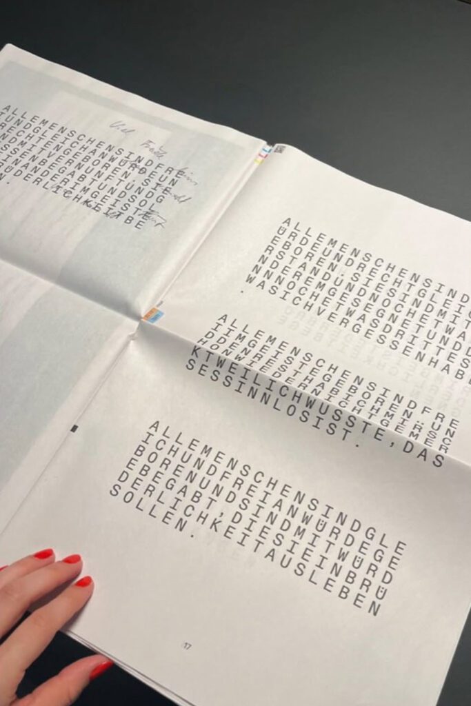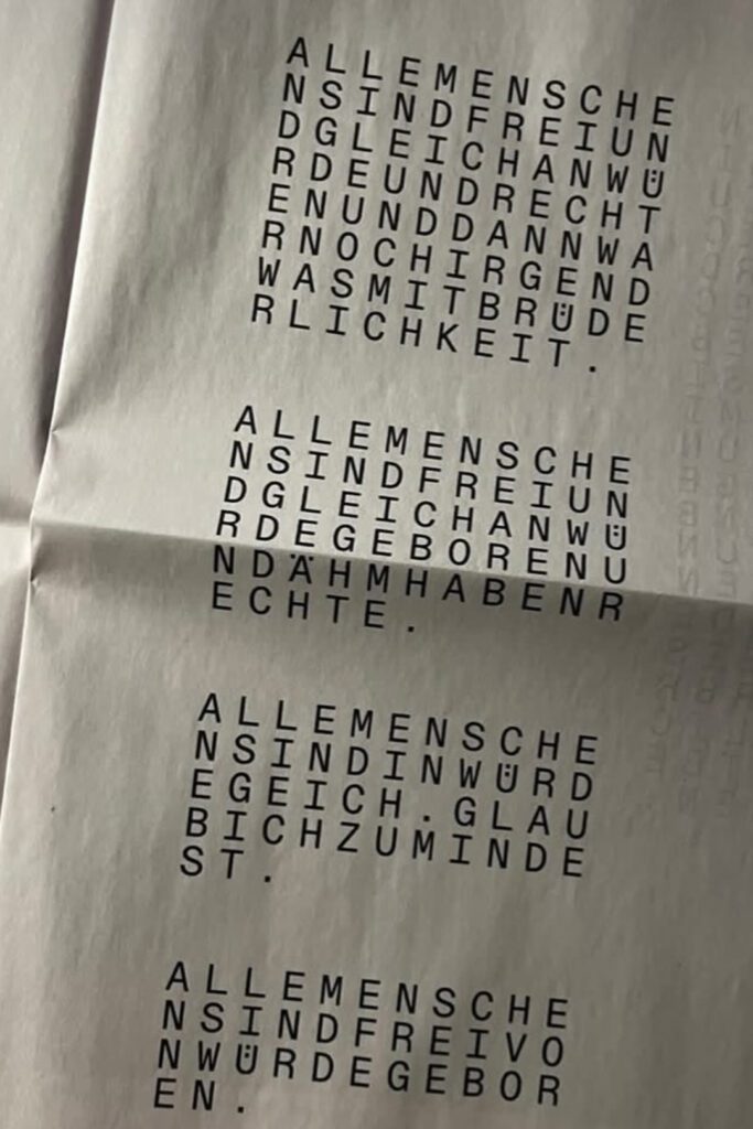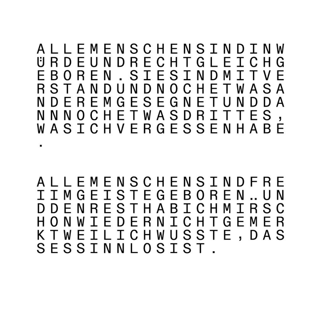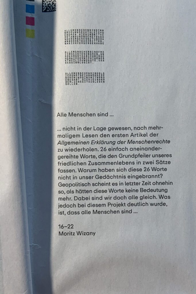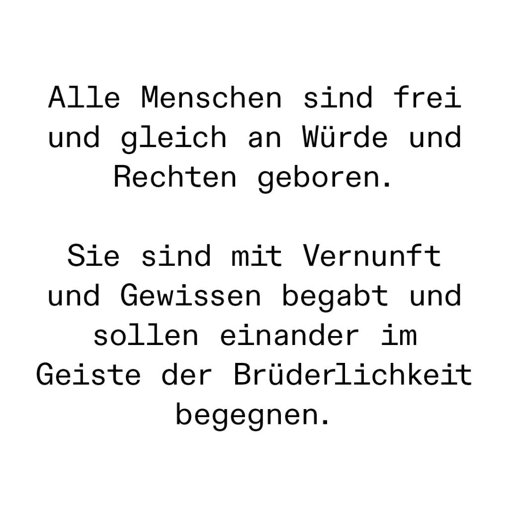 nicht in der Lage gewesen nach mehrmaligen lesen den ersten Artikel der allgemeinen Menschenrechtserklärung zu wiederholen. 26 einfach aneinander gereihte Worte, die den Grundpfeiler unseres friedlichen Zusammenlebens in Worte fasst. Warum sind diese 26 Worte nicht in unser Gedächtnis gebrannt? Geopolitisch wirkt es sowieso in letzter Zeit als hätten diese Worte keine Bedeutung mehr.