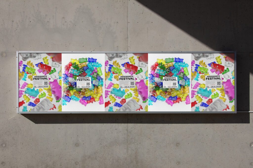 The idea, our University is a place full of colour and with diverse personalities, all working into different directions, but with the same purpose, to create something that makes a difference. This diversity is happening in a certain frame. We decided to reference gummibear packagings, since they are fun, diverse, but still have a common purpose, bringing joy. With Nadine Jochum and Markus Leb.