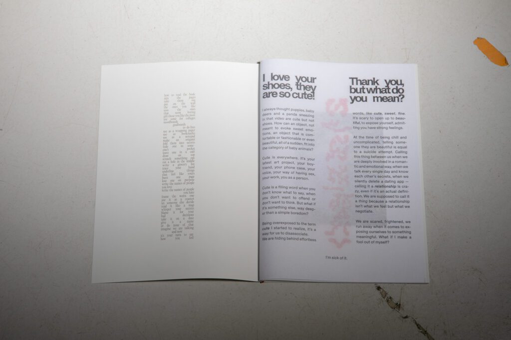 The word cute is used ironically — a comment on how quickly we label things instead of really looking at them.