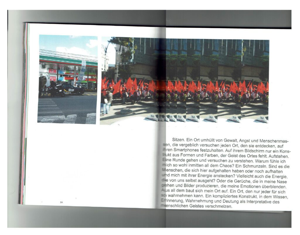 Im Rahmen unserer Klassenreise nach Mexiko Stadt wurde das Buch »Wurf/Nr. 3« gestaltet. In meinem Kapitel beschäftigte ich mich mit dem Thema Energie, die visuelle Energie, die Energie in Städten, an Orten und von Menschen, wie sie uns beeinflusst und was sie ausmacht. Gearbeitet wurde mit Fotografie und selbstgeschriebenen Texten.