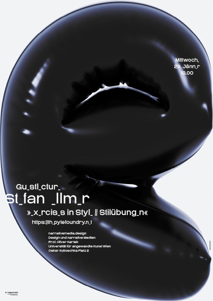 3d-animation & post_rd_sign for gu_stl_ctur_ of st_fan _llm_r only using th_ l_tt_r “e“ onc_!