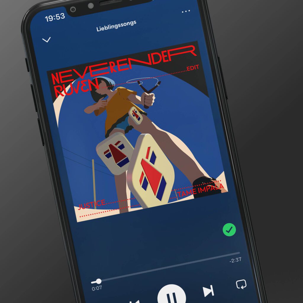 Diese Cover Gestaltung entstand in Zusammenarbeit mit Ruven Rittberger, Student des Vienna Music Institutes der Abteilung Elektronische Musik und Sound Design. Das ursprüngliche Cover wurde grafisch überarbeitet, neu interpretiert und in einem experimentellen Prozess neu gestaltet. Parallel dazu entstand ein musikalischer Remix. Das Projekt untersucht das Zusammenspiel von visueller und auditiver Sprache und lotet aus, wie sich grafische Gestaltung und Musik gegenseitig beeinflussen, spiegeln oder kontrastieren können.