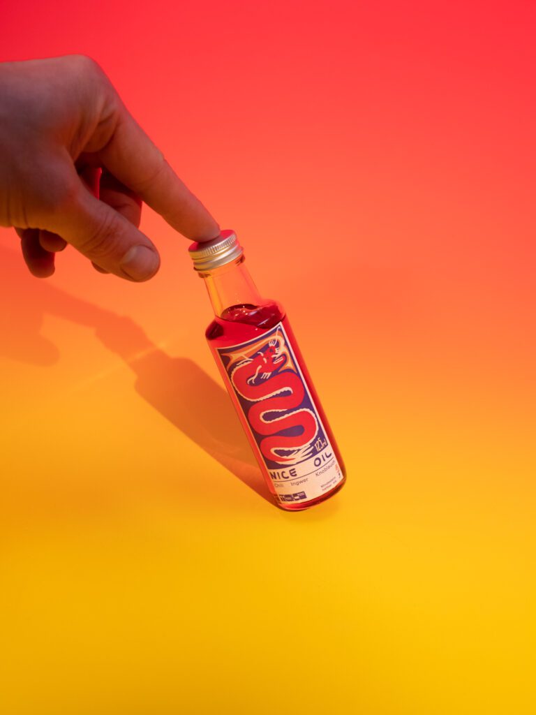 Label für das Chili-Öl des japanische Restaurant Maka Ramen.