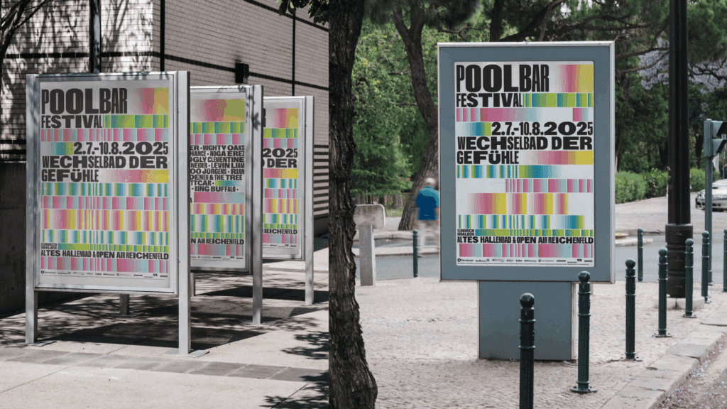 Für das Poolbar Festival 2025 wurde ein medienübergreifendes Gestaltungskonzept entwickelt, das das diesjährige Leitmotiv „Wechselbad der Gefühle“ visuell interpretiert. Im Zentrum steht eine eigenständige Bildsprache, die Kontraste und Emotionen in einem spannungsvollen Zusammenspiel erfahrbar macht.