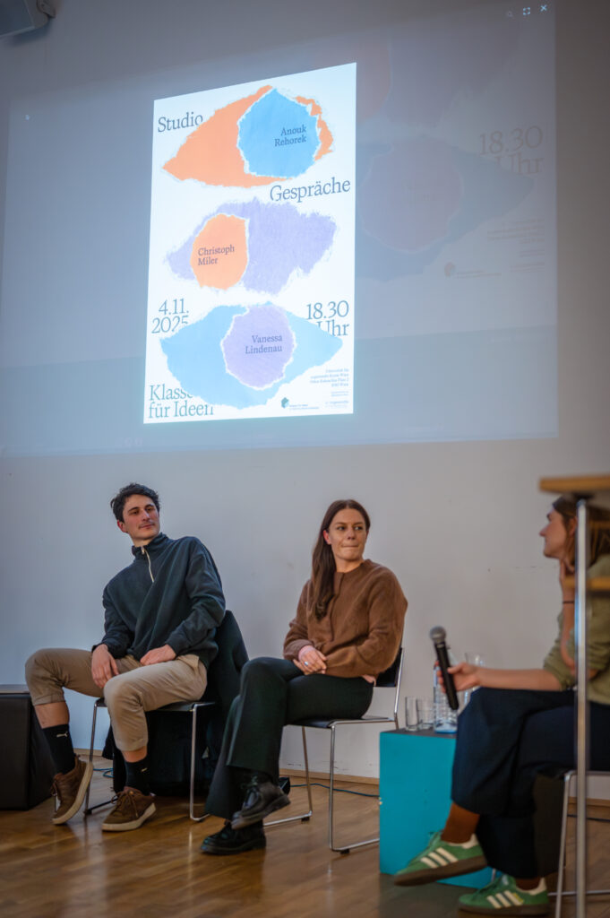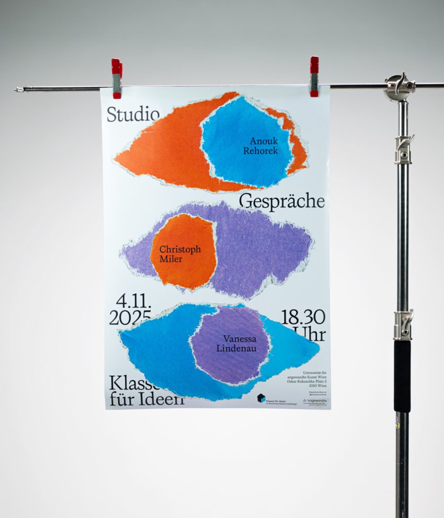 Plakatgestaltung für die Studiogespräche mit Anouk Rehorek, Christoph Miler und Vanessa Lindenau.