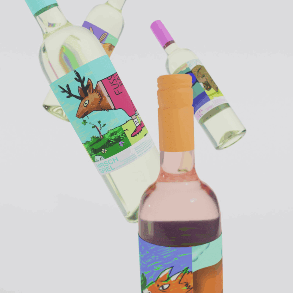 Das Tierspiel ist inspiriert vom österreichischen Fabelwesen „Wolpertinger“ bzw. „Raurackl“, das sich aus Körperteilen verschiedener heimischer Tiere zusammensetzt. Dieses Prinzip der hybriden Kreatur bildet die Grundlage für eine Serie von Weinetiketten, bei denen jedes Tier aus drei unabhängig gestalteten Segmenten besteht – illustriert von jeweils unterschiedlichen Illustrator_innen. Platziert man mehrere Flaschen nebeneinander, eröffnen sich vielfältige Kombinationsmöglichkeiten: Tierkörper, Köpfe und Gliedmaßen lassen sich neu zusammensetzen und zu immer anderen Fabelwesen arrangieren. So verwandelt sich das Etikett vom bloßen Designobjekt in ein spielerisches, kollektives Gestaltungserlebnis – ein Mitbringsel, das zum Mitmachen einlädt.