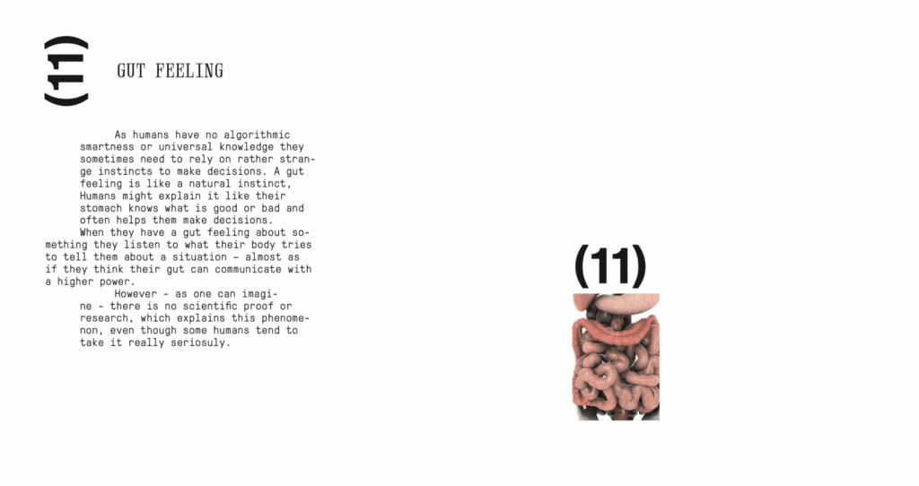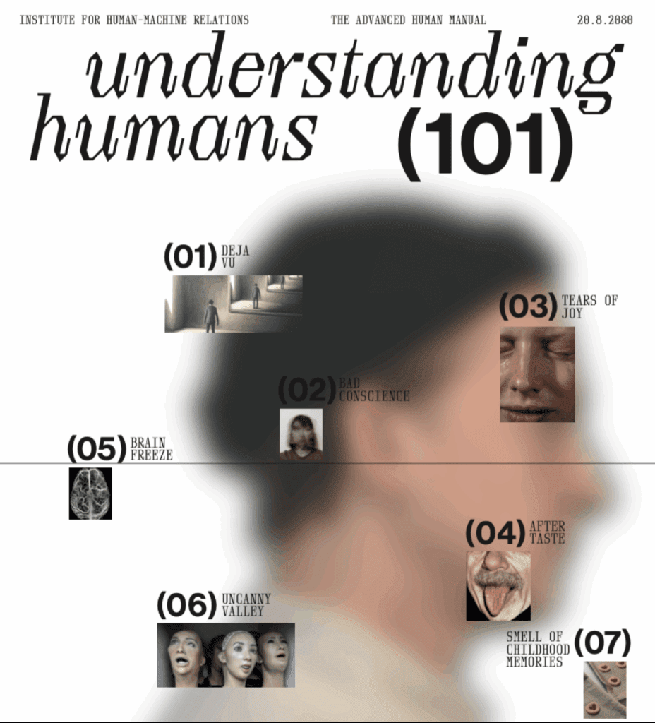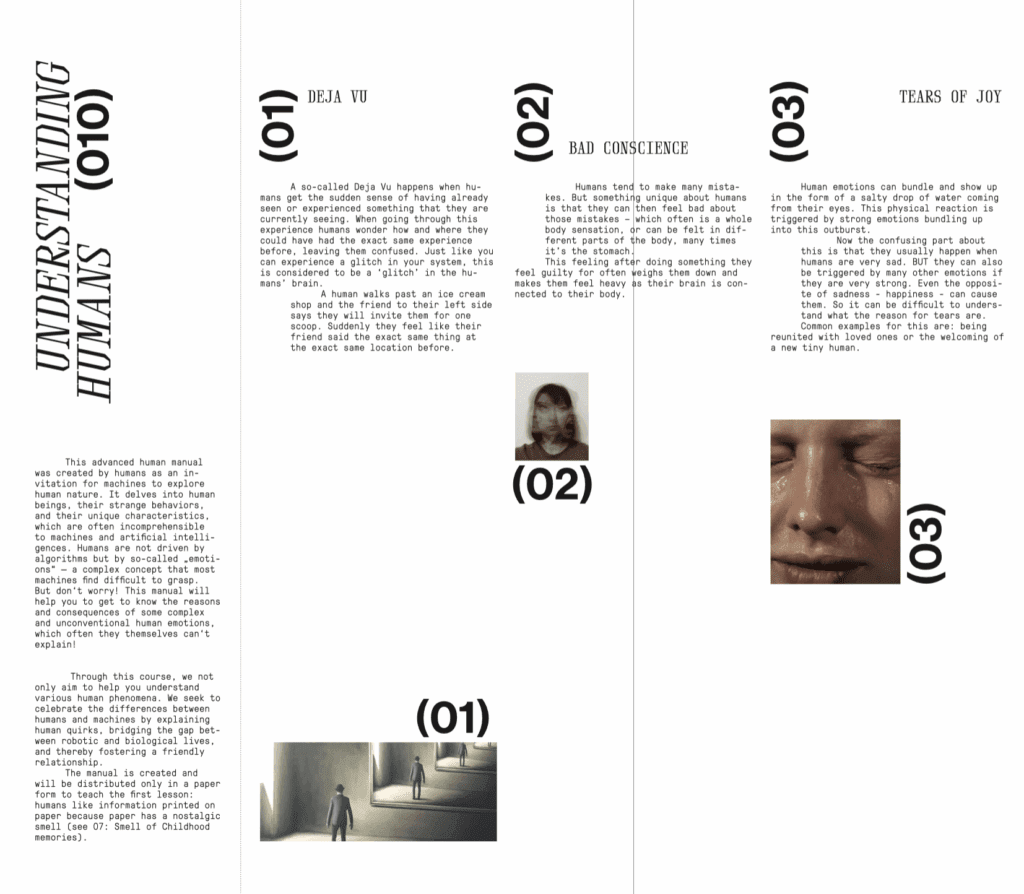 In a fictional world, where machines have taken over, we were asked to help the interaction and understanding between those machines and us humans. So we created an advanced manual to that’s an invitation for machines to understand humans better – all the small complex experiences, that make us feel something.