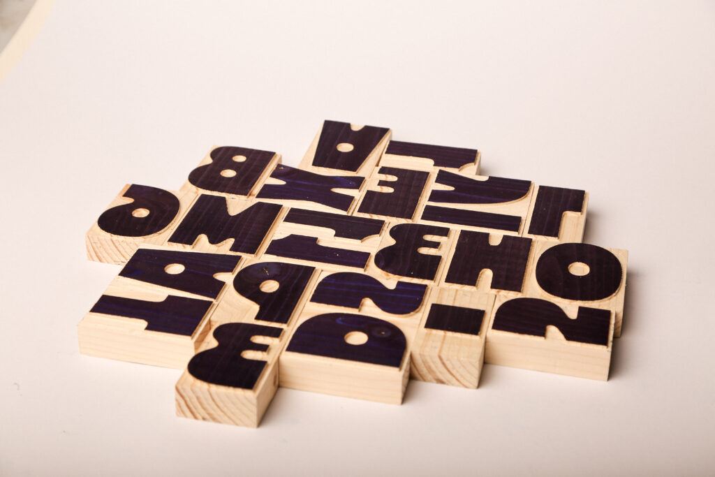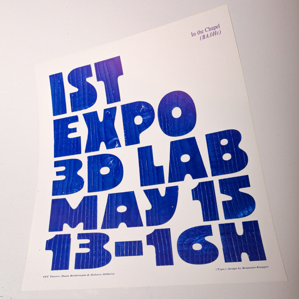 Aus einer eigens entworfenen Schrift wurden mithilfe einer CNC-Fräsmaschine Holzlettern hergestellt, mit denen anschließend ein Plakat im Hochdruckverfahren gedruckt wurde.